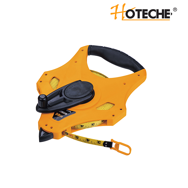 30MIFIBERGLASS MEASURE TAPE material:ABS+TPR shell, fiber glass tape, width: 15mm, 3:1 gear ratio 50m/165ft Fiberglass Measuring Tape Material:ABS+TPR shell Fiber glass tape, yellow color Width: 15mm Thickness: 0.48mm 3:1 gear ratio for fast rewind Metric /Inch
